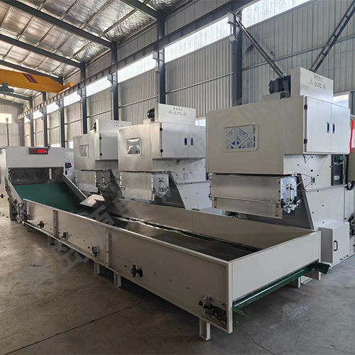 該機器主要用于開松各種等級捆包纖維,且能夠定量喂入。多臺復(fù)合使用可按比例混合不同纖維。采用自動控制,調(diào)節(jié)范圍大,使不同纖維配比準確,混合均勻,使用新式電子稱重結(jié)構(gòu),更加節(jié)省人工。